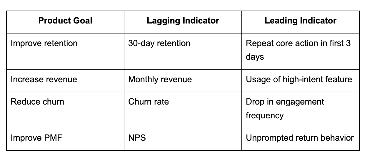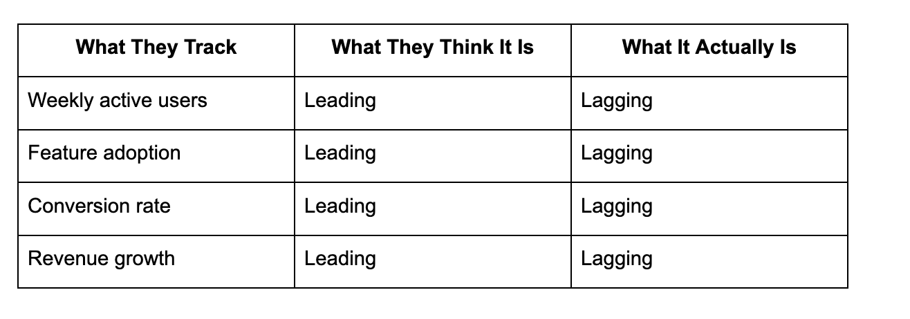 “Leading vs lagging indicators” is one of the most quoted ideas in product.